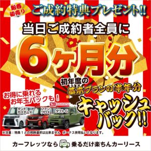 1月3日よりカーフレッツの初売り 今年もよろしくお願いします 6ヶ月間分キャッシュバック 新車に乗るならマイカーリース専門店 カーフレッツのオートショップSTです この機会に是非お越しください たくさんのご来店お待ちして […]